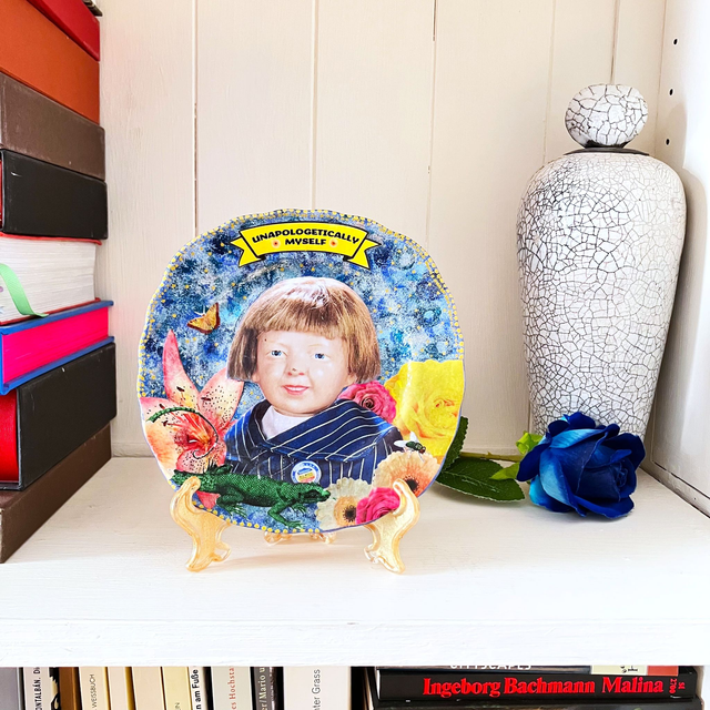 Express your individuality with this captivating collaged wall plate, featuring a vintage-inspired doll surrounded by vibrant, colourful flowers and whimsical creatures from House of Frisson. Perfect for those who dare to be unique, creative, and unapologetically themselves, this artistic piece adds a playful yet elegant touch to any room. Ideal for anyone seeking a bold accent for their living space.
