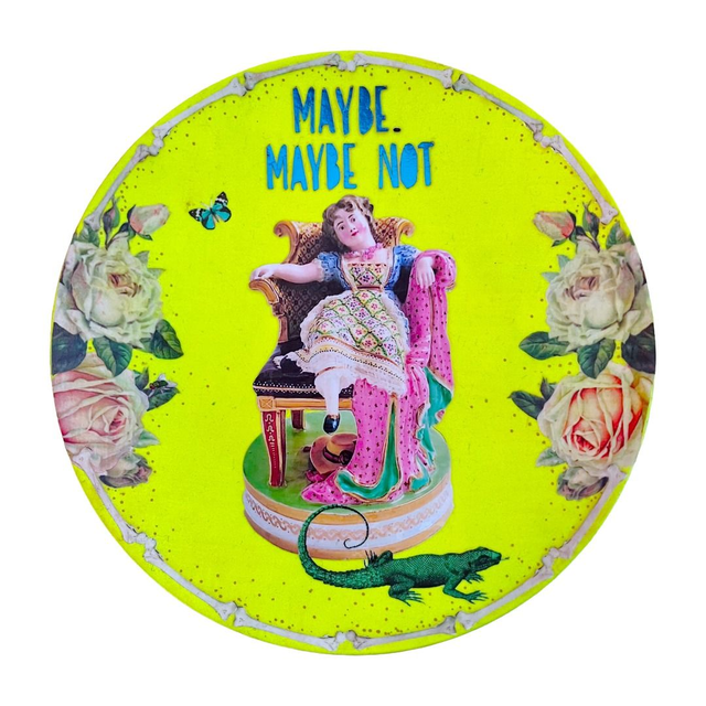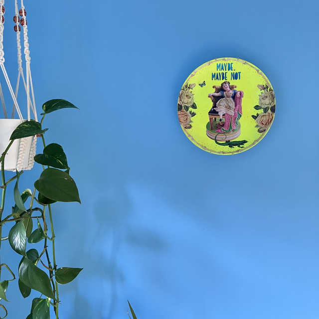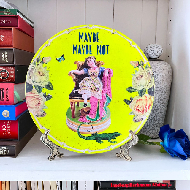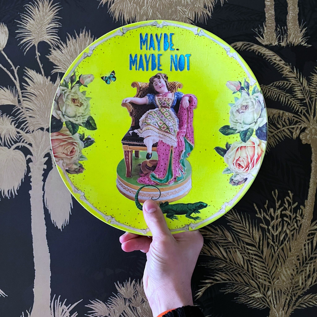 "Maybe. Maybe Not" Neon Green Upcycled Wall Plate - House of Frisson